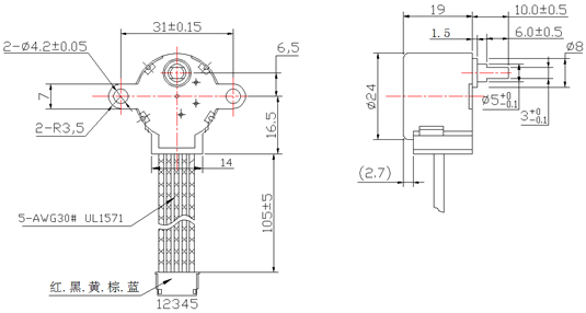 | 24BYJ48 | 12 | 200 | ≥500 | ≥900 | ≥39.2 | 100 | ≥20 | ≤40 | ≤35 | 5.625/64 | E |