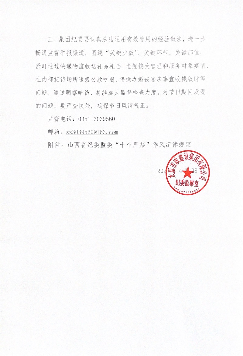太原市政集團關(guān)于“五一”、端午期間加強廉潔自律工作的通知