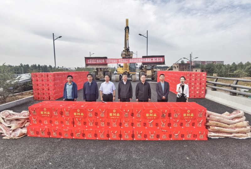 活動(dòng)中,太原市總工會(huì)領(lǐng)導(dǎo)來(lái)到施工現(xiàn)場(chǎng)與一線施工人員進(jìn)行親切交談,了解施工和生活情況,并為大家送來(lái)了月餅、豬肉等慰問(wèn)品。