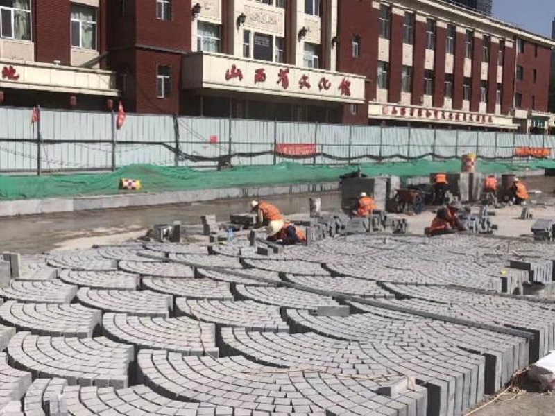 在鋪裝中,鋪裝的效果直接影響到五一廣場(chǎng)的整體外觀。為做好扇形花崗巖丁石的鋪裝工作,項(xiàng)目部從細(xì)處著眼,從小處著手,以打造精細(xì)化工程為目標(biāo),助力再現(xiàn)龍城“新地標(biāo)”。