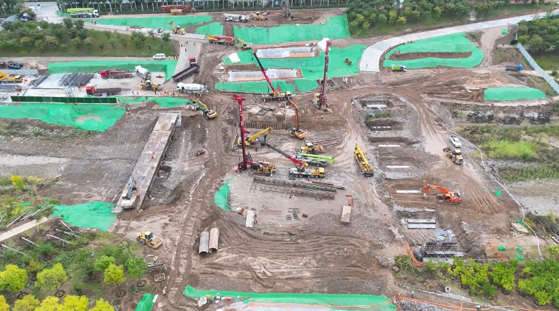 幸福橋設(shè)計為一座跨汾河大橋。項目部根據(jù)工程特點,將工程劃分為東西兩個工區(qū),分解關(guān)鍵節(jié)點工期目標(biāo),拆分成一般節(jié)點工期,再細(xì)化為每周、每日的進度計劃,層層細(xì)化,層層落實。同時,項目部安排道排、橋梁等專業(yè)施工隊,通過組織流水施工作業(yè),減少交叉作業(yè)影響,保證各工作面既滿負(fù)荷工作,又不互相干擾,加快施工進度。由于該工程施工范圍位于汾河兩岸,地質(zhì)情況比較復(fù)雜,地下水位高,地下土質(zhì)為卵石,開挖難度較大,施工人員先利用螺旋鉆機進行引孔,再采用“止水鋼板樁+拉森樁”的方式,起到有效防水和支護的效果。在進行橋梁基礎(chǔ)施工時,項目部采用正循環(huán)鉆孔灌注樁的施工工藝進行施工作業(yè),正循環(huán)鉆孔通過水泵壓送泥漿,從鉆桿柱中心進入孔底并返出,能夠快速完成鉆孔作業(yè),操作方式簡便,降低了施工難度?,進一步加快施工進度。針對工程重點難點,項目部還專門制定了《深基坑安全專項施工方案》和《高大模板支撐體系安全專項施工方案》,邀請專家進行論證,確保重點環(huán)節(jié)的施工質(zhì)量。