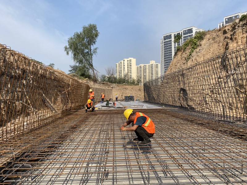 10月4日清晨,一公司承建的亞日街道路建設(shè)工程施工現(xiàn)場(chǎng)一片繁忙景象,全體施工人員堅(jiān)守崗位,全力以赴投入到緊張施工中,力求高質(zhì)量完成工程任務(wù)。該工程場(chǎng)地狹窄,周邊建筑物密集,且雨污水管線需下穿現(xiàn)狀國(guó)防光纜、電力、燃?xì)狻崃Φ染C合管線。上午8點(diǎn),施工現(xiàn)場(chǎng)各類機(jī)械轟鳴運(yùn)轉(zhuǎn),工程車輛忙碌穿梭,項(xiàng)目部嚴(yán)把各道工序,守牢細(xì)節(jié)質(zhì)量關(guān),針對(duì)管道檢查井埋深均超過(guò)5米的實(shí)際情況,施工人員采用倒掛法開(kāi)展拖拉管工作井施工,利用分層澆筑振搗密實(shí)方法,當(dāng)?shù)谝还?jié)混凝土達(dá)到規(guī)定強(qiáng)度后,便拆除模板開(kāi)展第二節(jié)倒掛井壁施工,如此循環(huán)直至達(dá)到設(shè)計(jì)井底,目前已完成工作井、接收井高壓旋噴樁支護(hù)工作,正在進(jìn)行接收井冠梁及一模澆筑。全體施工人員爭(zhēng)分奪秒、堅(jiān)守一線,以時(shí)不我待、使命必達(dá)的決心和干勁,為城市建設(shè)添磚加瓦。
