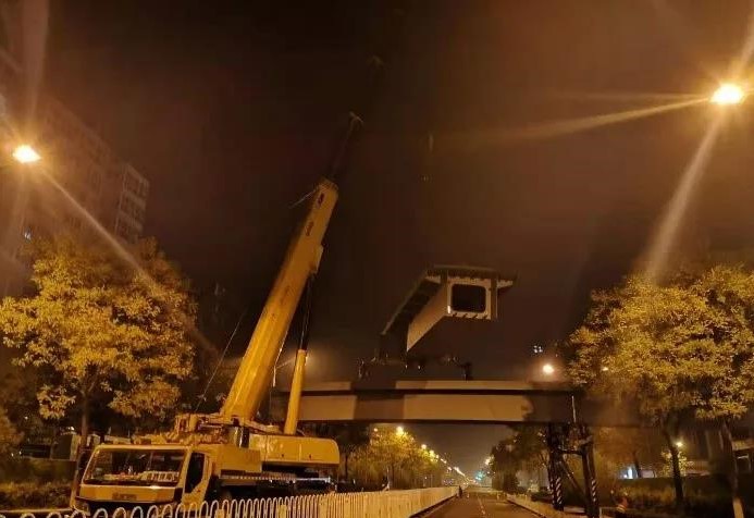 11月10日晚,隨著隆隆的機械轟鳴聲,和平北路瓦窯北街人行天橋歷時一個月,開始進行鋼梁的吊裝工作。由二公司承建的行人過街設施工程于9月20日正式開工建設,包括和平北路瓦窯北街人行天橋、南內(nèi)環(huán)西街大眾宿舍公交站人行天橋和新晉祠路西寨北街人行天橋。截止目前,三座人行天橋橋梁樁基工作已全部完成。